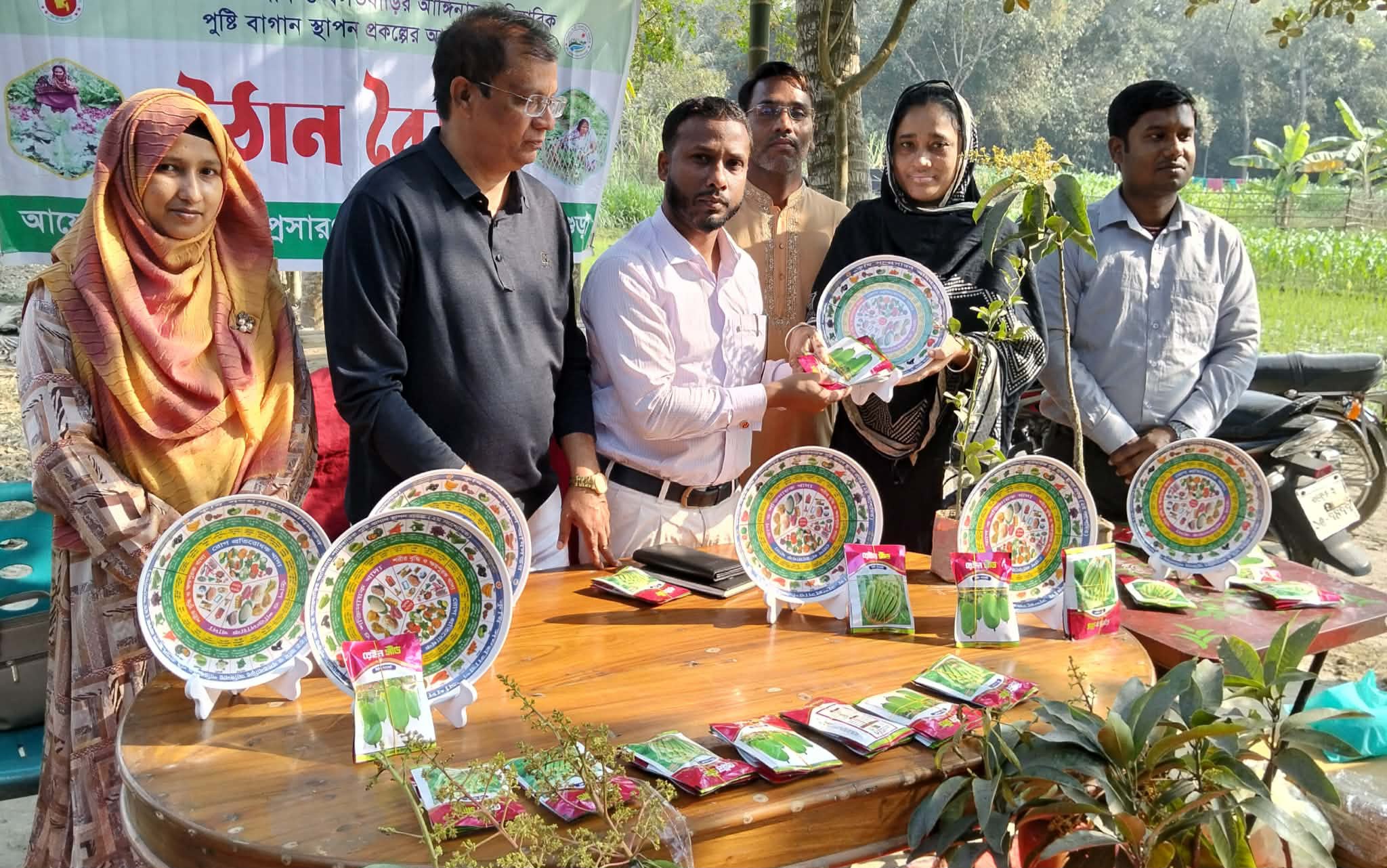 অনুষ্ঠান শেষে ২০জন উপকারভোগীর মাঝে আম ও লেবুর চারা, বিভিন্ন সবজির বীজ এবং পুষ্টিগুণ সম্বলিত সবজি অঙ্কিত প্লেট বিতরণ করা হয়। উপজেলা কৃষি কর্মকর্তা কৃষিবিদ সোহরাব হোসেন এসব সামগ্রী বিতরণ করেন।