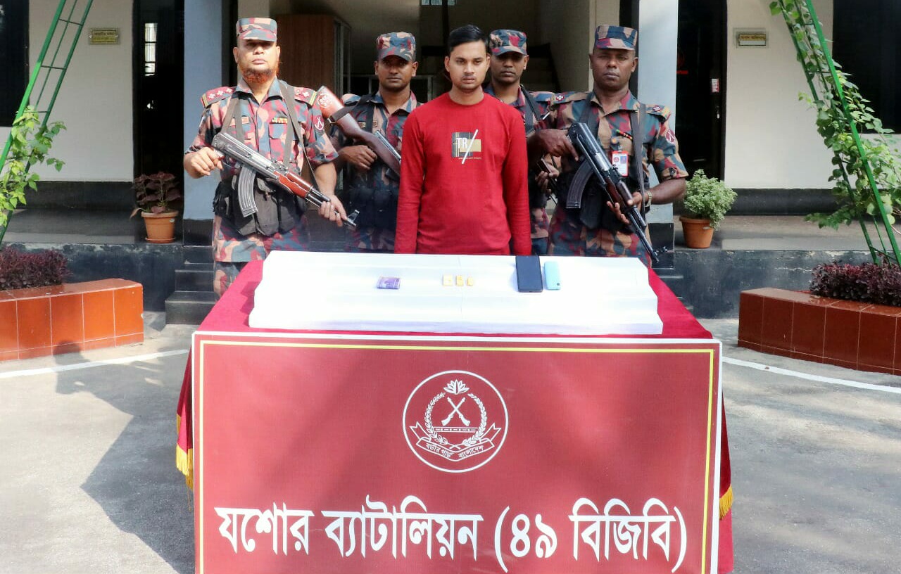 যশোর প্রতিনিধি: যশোরের চাঁনপাড়া বাজার এলাকা হতে ১৭৩.৭৬ গ্রাম ওজনের ০১ টি স্বর্ণের বারসহ ০১ জন আসামী আটক করেছে বিজিবি